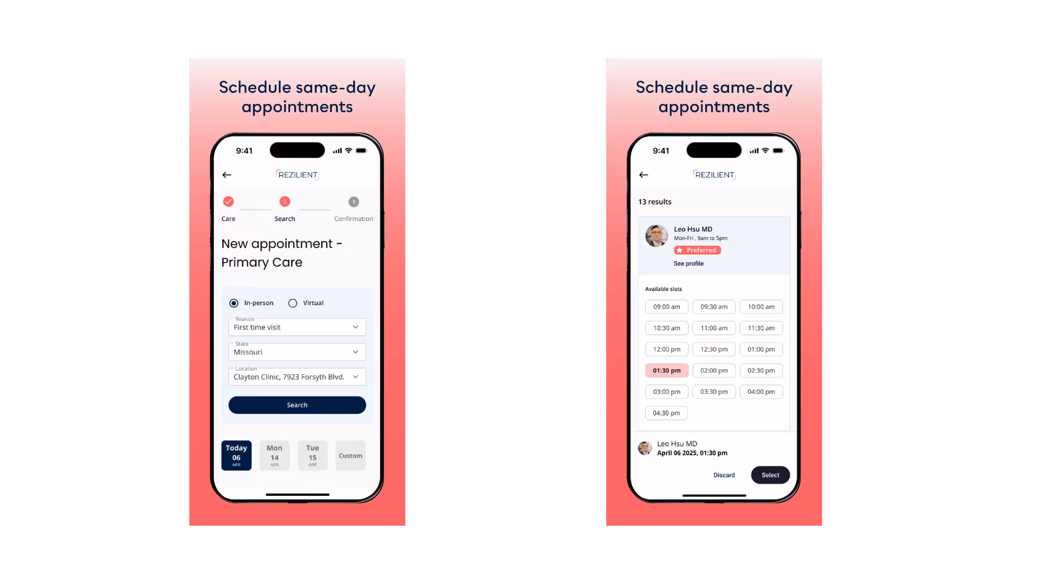 Book same-day in-person or virtual appointments